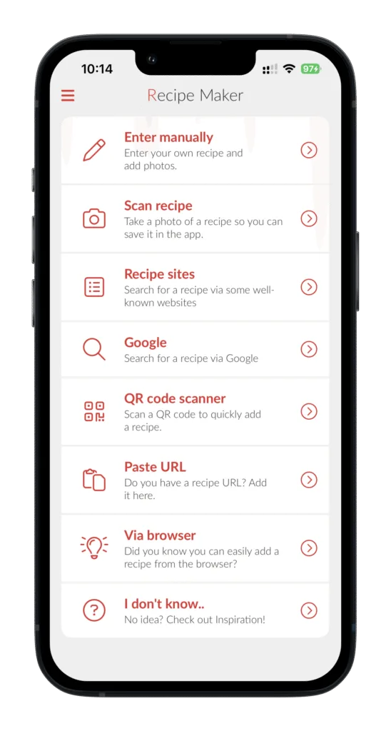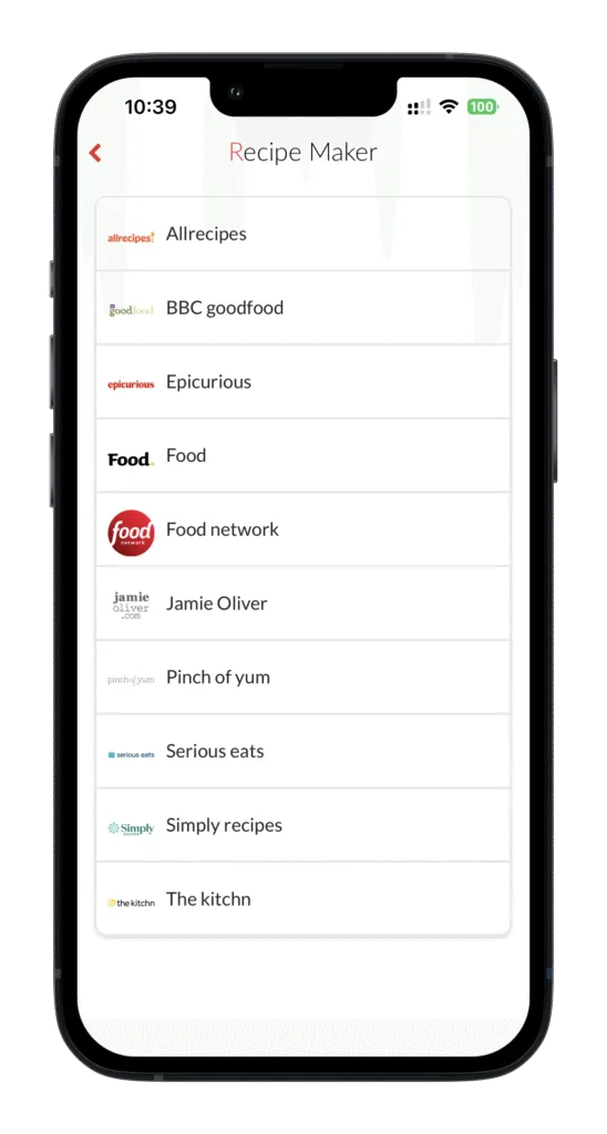 We’ve compiled a list of popular recipe websites that you can visit to add recipes to your collection with just one click. In the app, go to Add Recipe and choose from our favorites: